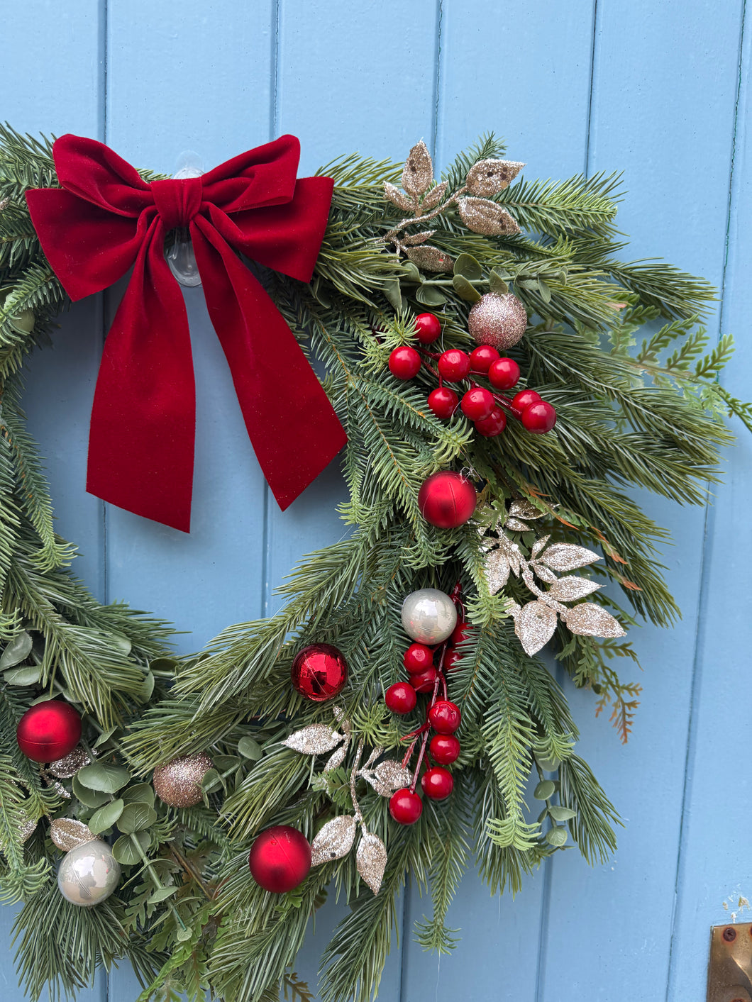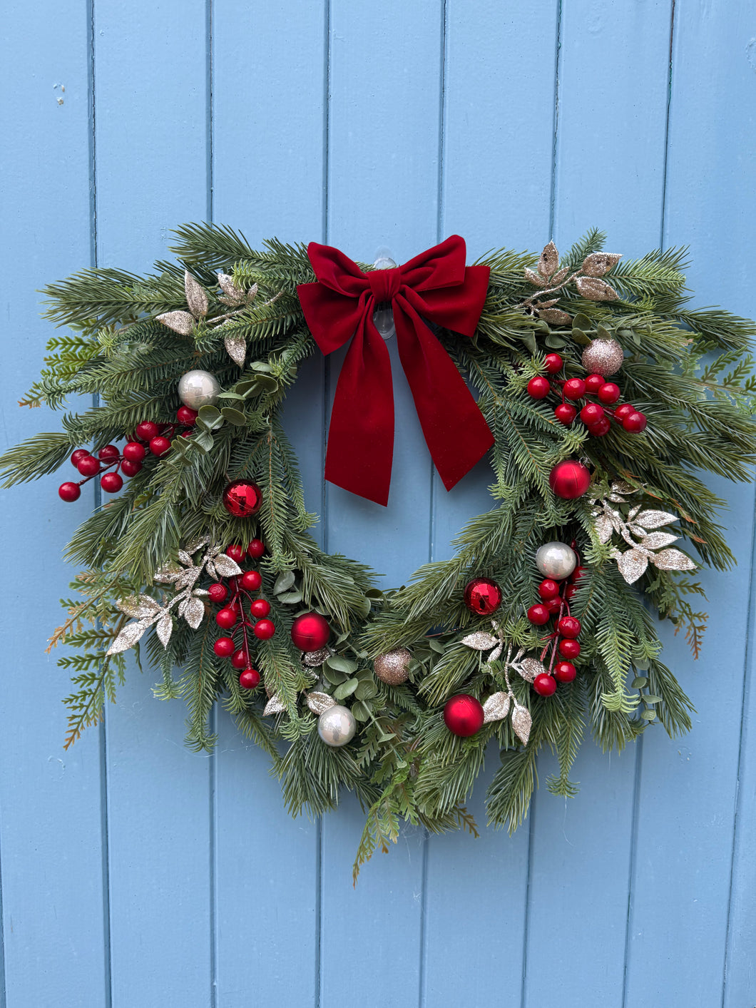 Introducing Noelle, the perfect festive centrepiece for your home this season. This stunning artificial Christmas wreath combines lush seasonal foliage with vibrant berries and delicate mini baubles, finished with charming golf-inspired touches that add a unique personality. A luxurious red velvet bow crowns the design beautifully. Versatile and durable, Noelle works wonderfully displayed indoors on your door or mantelpiece, or outdoors to welcome guests with holiday cheer. Built to last through the season and beyond, this wreath brings festive warmth to any space.