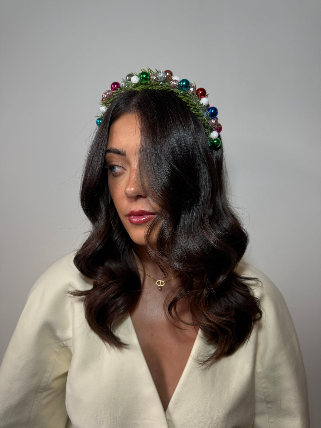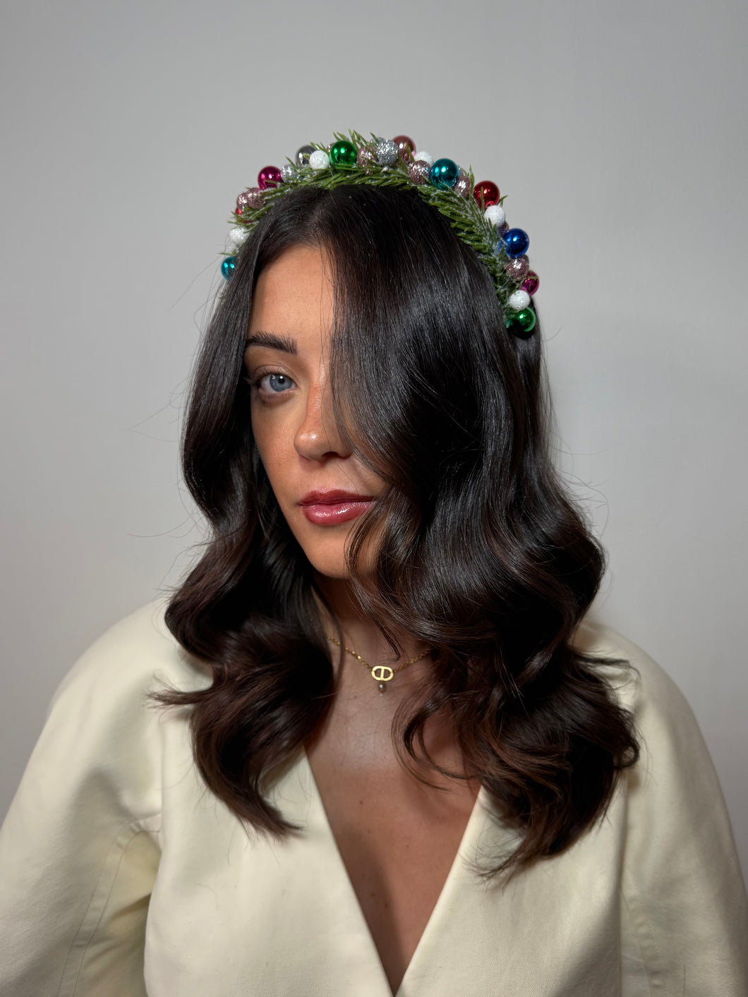 Introducing Rita, the perfect accessory for your holiday outfit. This colourful Christmas headband is handmade in Derry and features a mini bauble and glitter berries, adding a festive touch to any look. Stand out this festive season with Rita.