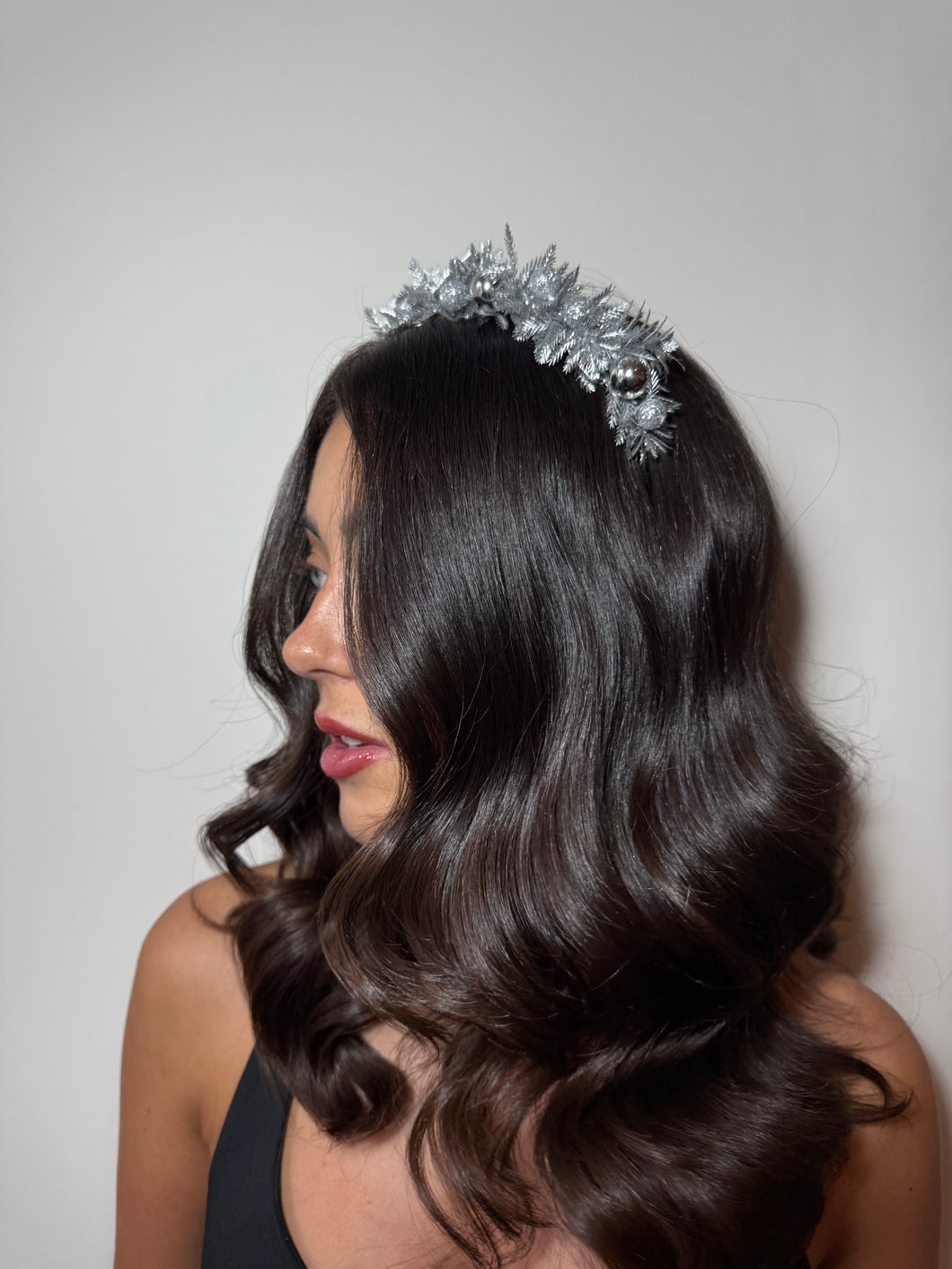 The perfect accessory for spreading Christmas vibes. This handmade Sylvie headband will add a touch of glamour to any outfit. Jingle all the way with Sylvie